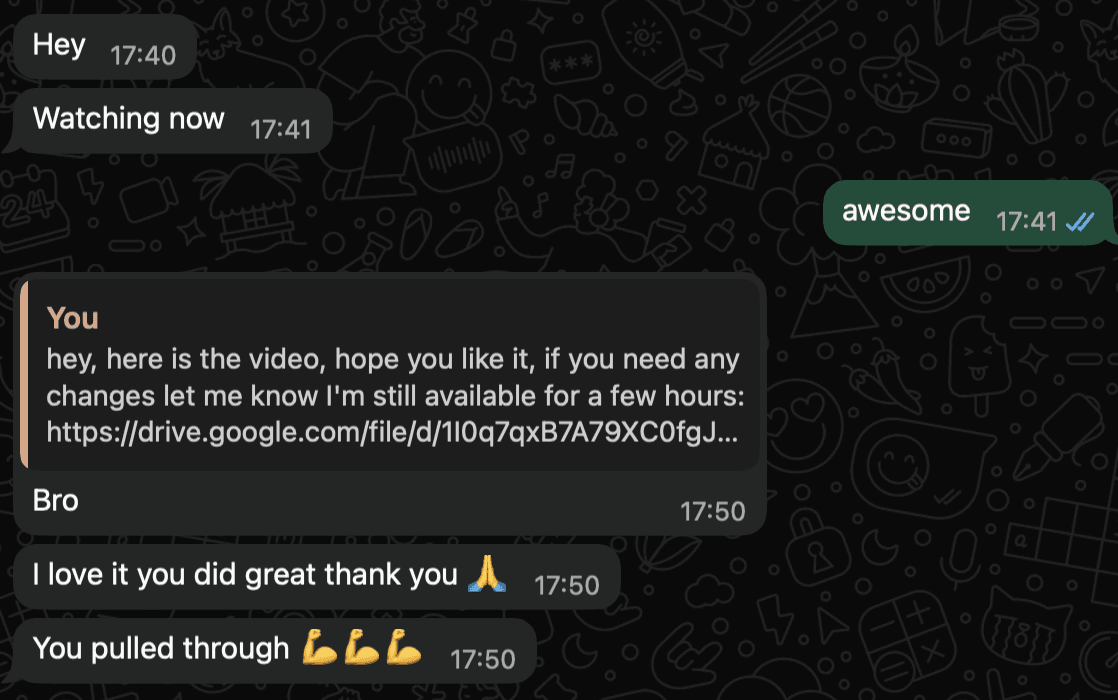 Damian edited the ads and course content that helped enroll over 50,000 students — the results were incredible. He also created short videos for my personal brand that reached nearly 1 million views on TikTok and Instagram Reels, and edited YouTube videos for both me and my clients that gained thousands of views and subscribers.