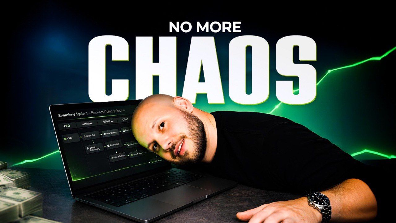 A system-focused thumbnail showing a clean business dashboard, rising green graph, and “No more CHAOS” text to signal clarity, control, and scalable growth.
