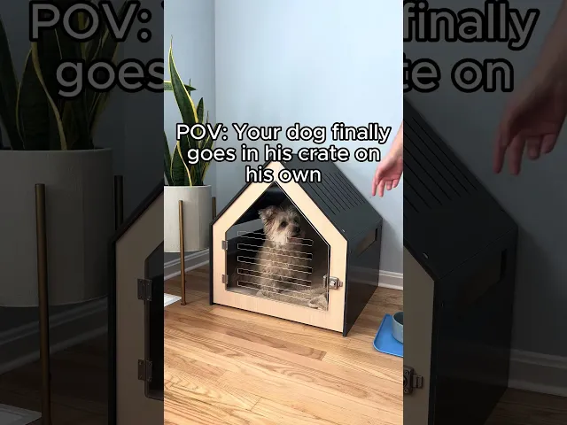 Simple POV-style UGC ad showing the dog crate in real daily use, paired with AI voiceover and clear on-screen text for clarity and authenticity.